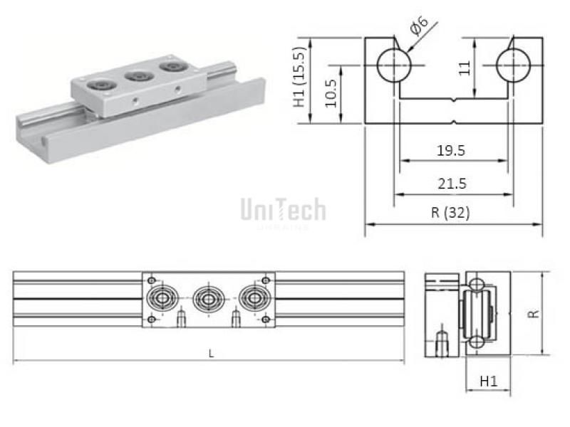Рельса роликовая CI 32 R=32 H1=15,5