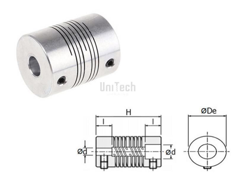 Сервомуфты представляют собой цельные беззазорные муфты, доступные в двух вариантах: трехзаходные и шестизаходные. Компактность и гибкость таких муфт является основным преимуществом при выборе оптимального решения для точной передачи крутящего момента.Конструкция гибкой шестизаходной муфты: Неразъемная гибкая муфта 32 с номинальным моментом 15 Нм и весом 0.1 кг, изготовлена из алюминия. Данный типоразмер муфты устанавливается на вал с диаметром D=6-16 мм и регулируется установочными винтами. Сервомуфты муфты отличаются количеством лучей (заходов), что влияет на жесткость при кручении, гибкость и соответственно на крутящий момент муфты: высокая гибкость и больший крутящий момент - у шестизаходных муфт высокая гибкость, но меньший крутящий момент - у трехзаходных муфт для более быстрого снятия/установки муфты - сервомуфты с зажимными болтами Мехобработка муфт:По вашему запросу мы можем выполнить мехобработку муфты под ваши требования (расточка до нужного диаметра вала, пробивка шпонпаза и др.). Виды работ по металлообработке деталей можете посмотреть тут. Применение безлюфтовых муфт:Применяя цельные муфты с нулевым зазором вы минимизируете момент инерции и компенсируете среднюю угловую, радиальную и осевую несоосность. Такие муфты эффективно используют в серводвигателях, в станках с ЧПУ, в измерительных устройствах, в печатных и гравировальных машинах. Преимущества данного типа муфт: безлюфтова цельная конструкция, геометрическая форма, низкая инерция, надежность. Если вам нужны безлюфтовые муфты с такой же компактностью в размерах и при этом с высокой жесткостью на кручение, вы можете подобрать необходимый тип среди сильфонных муфт КВК.