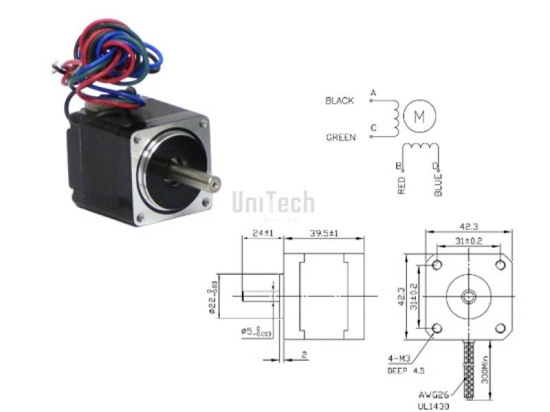 Шаговый двигатель 0,36Nm, 1,8°, FL42STH38-1684A Fulling Motor