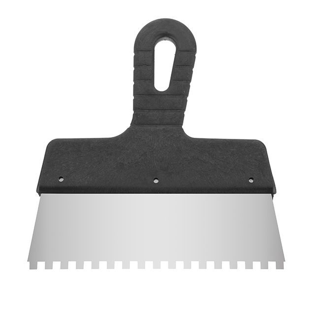 Шпатель INTERTOOL KT-2206 виготовлений з нержавіючої сталі, має прямокутне полотно з квадратним зубом 6*6 мм шириною 200 мм. Ергономічна пластикова рукоятка забезпечує надійний захват. Призначений для нанесення клейових і цементних розчинів на керамічну плитку, природний камінь, при проведенні облицювальних робіт. Легкий і зручний у використанні.