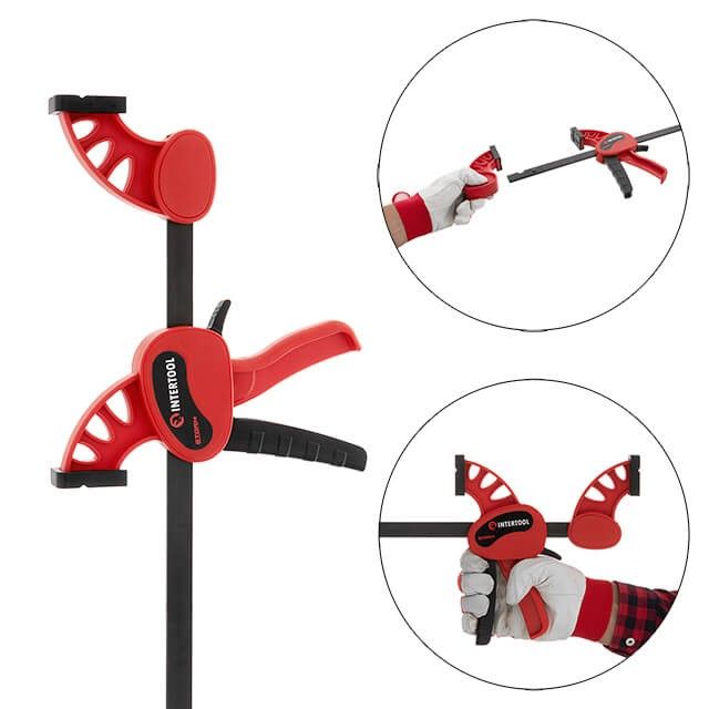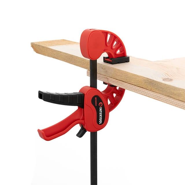 Струбцина автоматична INTERTOOL STORM HT-6145 - універсальний пристрій для затискання та фіксації деталей. Знадобиться у побуті для ремонту та у професійній діяльності. Гарантує повну нерухомість предметів для досягнення якісного результату склеювання, обробки та під час інших робіт.
