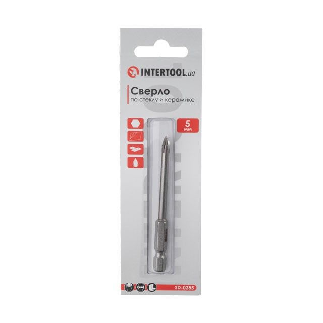 Свердло по склу та кераміці 5 мм HEX 1/4'' (6.35 mm) INTERTOOL SD-0285