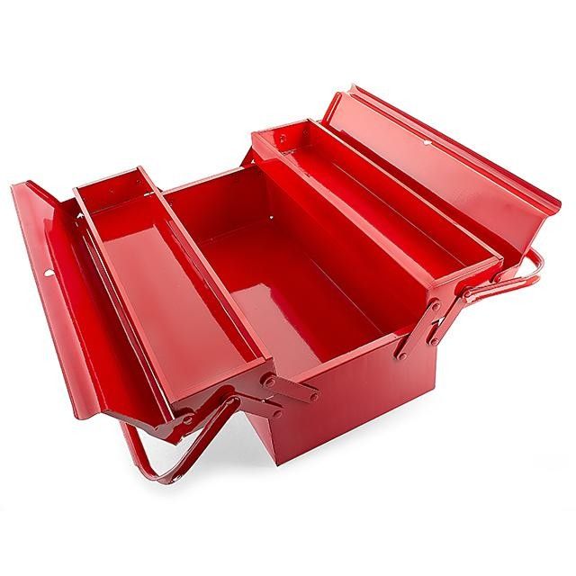Ящик для інструментів INTERTOOL HT-5043 дворівневий металевий, пофарбований. Складається з одного великого та двох малих боксів. Довжина ящика - 450 мм. Оснащений двома металевими ручками для перенесення. Зручна система доступу до вмісту - малі бокси роз'їжджаються в сторони, забезпечуючи повний огляд внутрішнього простору.
