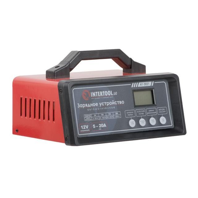 Зарядний пристрій INTERTOOL AT-3021 - інтелектуальний, управляється мікропроцесором та системою з багатоступеневим циклом зарядки.