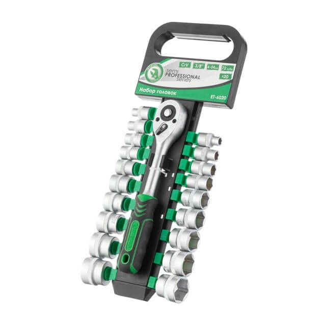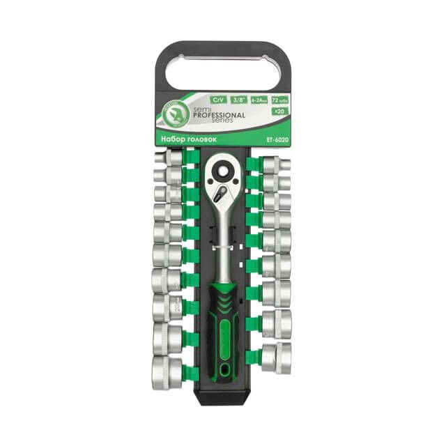 Набір торцевих головок з тріскачкою 3/8" 20 од, 72 зуба, Cr-V, INTERTOOL ET-6020