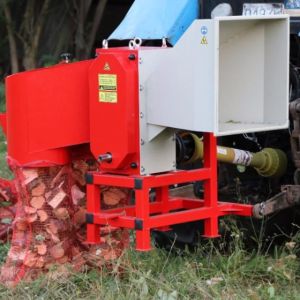 На подрібнювачі АМ-120ТР MAX встановлений бункер вивантаження, який здатний фасувати готову продукцію в сітки. Бункер вивантаження має два кріплення під сітки та шибер-перемикач, який дозволяє вибрати потрібний напрямок фасування. Така конструкція дозволяє значно пришвидшити процес фасування порубаних дров. Для подрібнювача гілок АМ-120ТР MAX підходять стандартні сітки розміром 50х80 см. Також є можливість замовити комплектацію з прямим вихідним бункером, для вивантаження подрібнених гілок насипом.