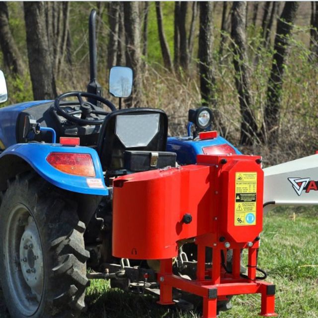 Подрібнювач гілок АМ-80ТР приводиться в дію від ВВП трактора та навішується на стандартну трьох точкову навіску. Мінімальна необхідна потужність трактора для роботи з подрібнювачем гілок складає 16 к.с. Для зʼєднання трактора з подрібнювачем ми рекомендуємо використовувати карданний вал класу Т2 із фрикційною муфтою яка захищає подрібнювач гілок та трактор від перевантаження.